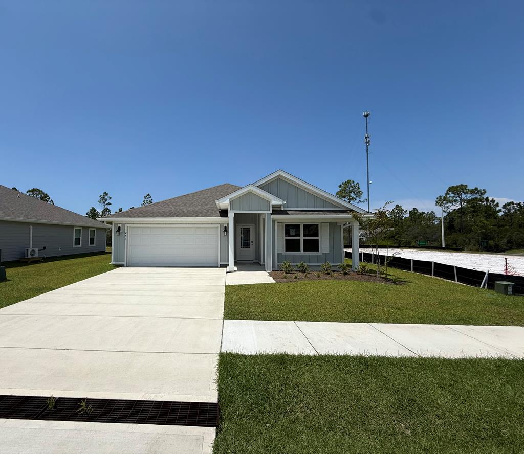 Come see our new home at 293 Cades Court located at Palmetto Bluff in Port St. Joe, Florida. The Cali is a single-story floorplan featured in the Palmetto Bluff subdivision of Port St. Joe, Florida. The interior is adorned with beautiful granite countertops, stainless-steel appliances, engineered vinyl plank flooring throughout the home, and more, the Cali at Palmetto Bluff is designed for comfortable, cozy living. As you enter this 4 bedroom, 2 bath home, you will see 1,799 square feet of spacious living. Inside you will see 8' ceilings throughout, engineered vinyl plank flooring throughout the home including the bedrooms. Beautiful granite countertops, white cabinetry and a spacious open living room and kitchen make this home perfect for having guests over. The kitchen has a large center island with cabinets underneath, ideal for serving food and extra storage. The kitchen also has a spacious pantry, and the stainless-steel appliances include smooth top range, microwave, and dishwasher. The primary bedroom has its own bathroom featuring a spacious walk-in closet with ventilated shelving, a double vanity with granite countertops, and a separate shower and tub. On the outside you will see the soft beach colors on each of the homes with durable Hardi Board around the home. The Cali features a covered rear patio to sit and enjoy the beautiful Florida weather. Each home in Palmetto Bluff has sidewalks that intertwine the community for you to enjoy your walks with the family during the gorgeous sunset views in Port St. Joe. Homes are subject to prior sale or rent. Home and community information, association fees (if any), included features, terms, availability and amenities, are subject to change at any time without notice or obligation. Drawings, pictures, photographs, videos, square footages, floor plans, elevations, features, colors and sizes are for illustration purposes only and will vary from the homes as built.