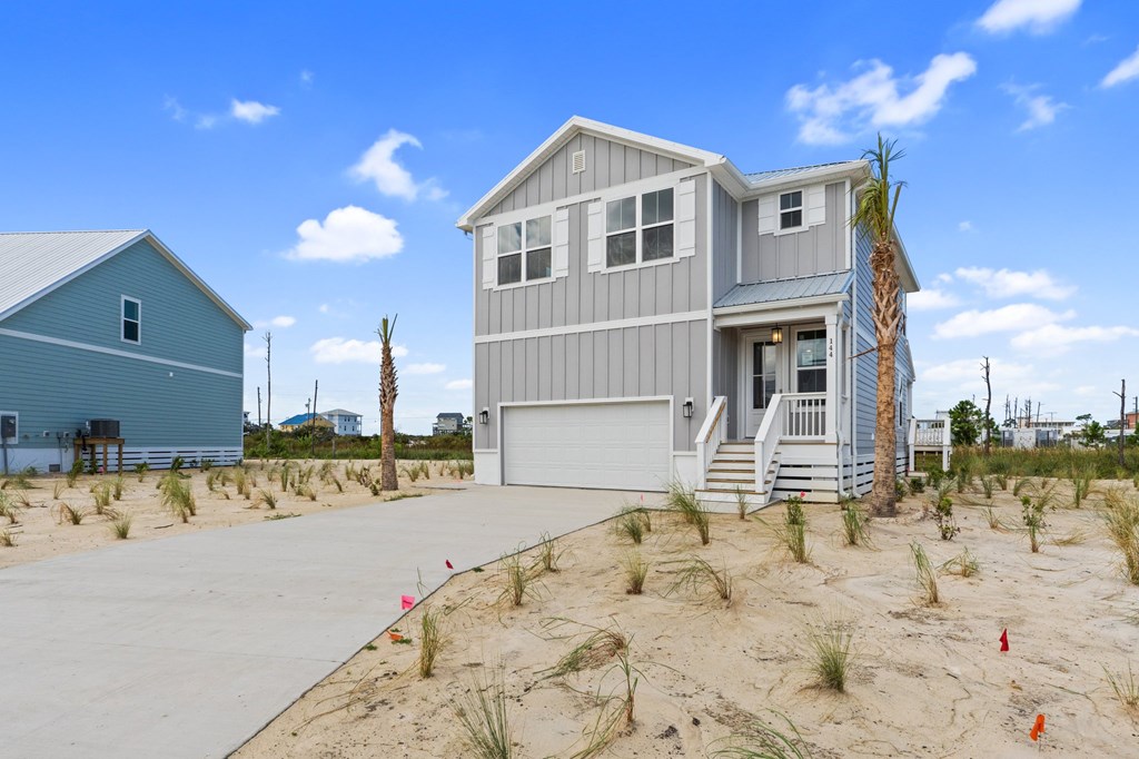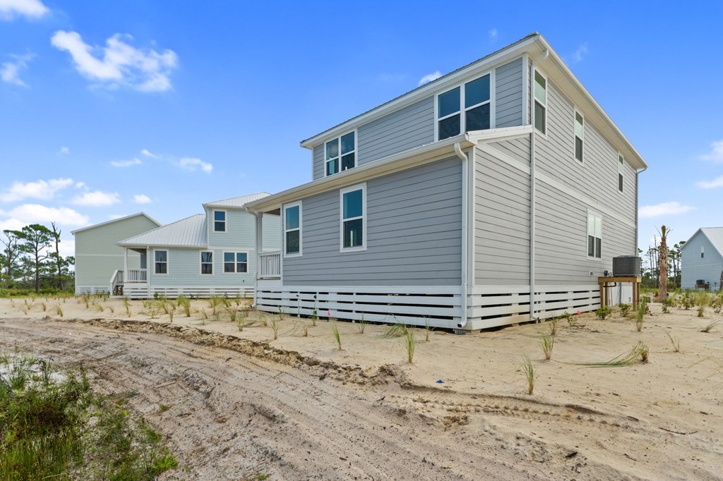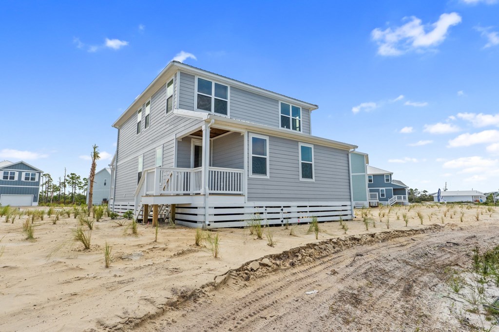 Welcome to the Key Largo, one of the new home floor plans featured at Redfish Cove at Cape San Blas, Florida. Redfish Cove will feature only 12 homes with beautiful features, including beautiful white cabinetry and quartz countertops, stainless steel appliances, and engineered vinyl plank flooring. When you walk inside, you will find matching quartz countertops in the kitchen and bathrooms, as well as exquisitely crafted cabinets throughout the home. Engineered vinyl plank flooring throughout the home which will give you the appearance of wood yet allow you to enjoy the low maintenance qualities of being water and scratch resistant. The stairs are made of beautiful oak treads leading to the spacious upstairs area. In the kitchen you will find a gorgeous herringbone back splash to compliment the quartz countertops that have been selected for your home. Each home comes with a Whirlpool appliance package with stainless-steel dishwasher, microwave and electric range, Moen brushed nickel fixtures with pull out faucet in the kitchen. The interior walls are a classic stage 4 smooth finish. The bathrooms offer you a classic Florentine tiled shower with a frameless glass door, raised countertops and raised height toilet. Other bathrooms offer a tub/shower combo (per plan) and raised height toilet. There is a powder bathroom on the main level with a pedestal sink and raised height toilet. Exterior features include and are not limited to Color Plus Hardie Plank Siding, covered back patio (per plan), metal Roof, 8-foot raised glass prairie door with designer brushed nickel hardware, 8-foot full glass back door, full house gutters, impact glass windows, crown molding (per plan), professionally landscaped yard with sod, shrubs, and a 15-gallon palm tree with an irrigation system. Each home is a Smart Home that offers you energy efficiency, the convenience of being able to monitor the temperature in the home, operate lights and keyless entry, Skybell doorbell enabling you to