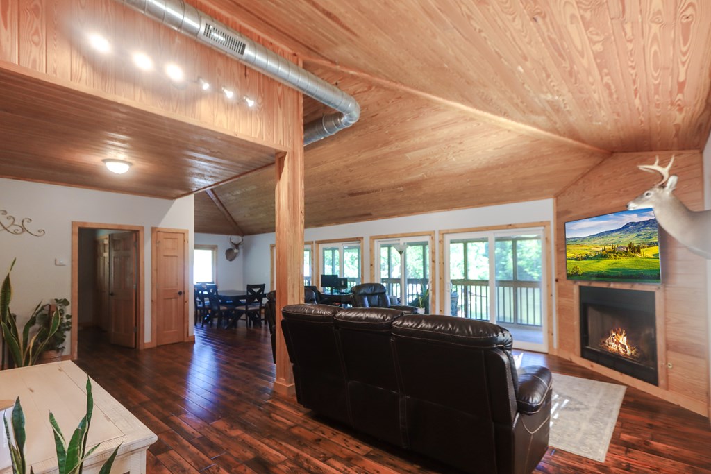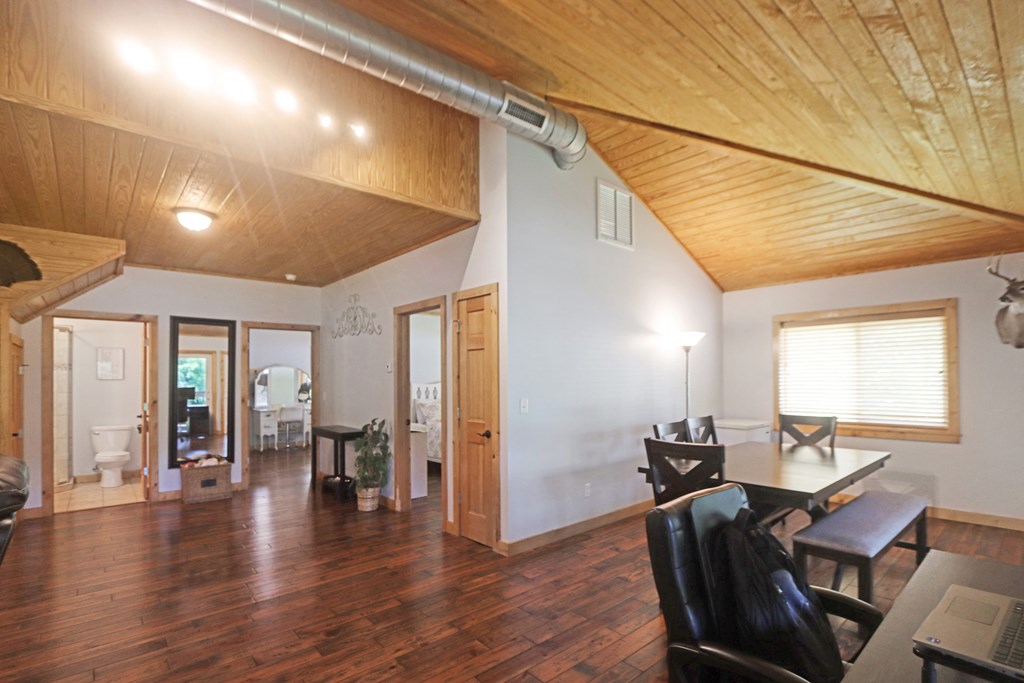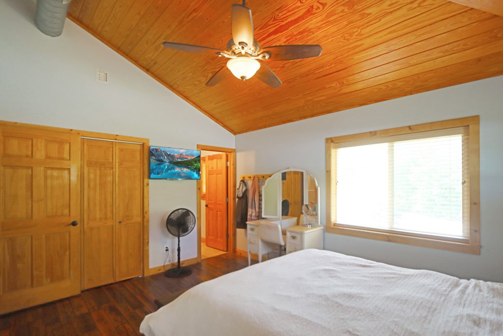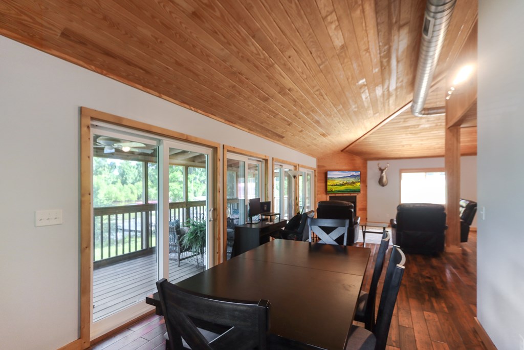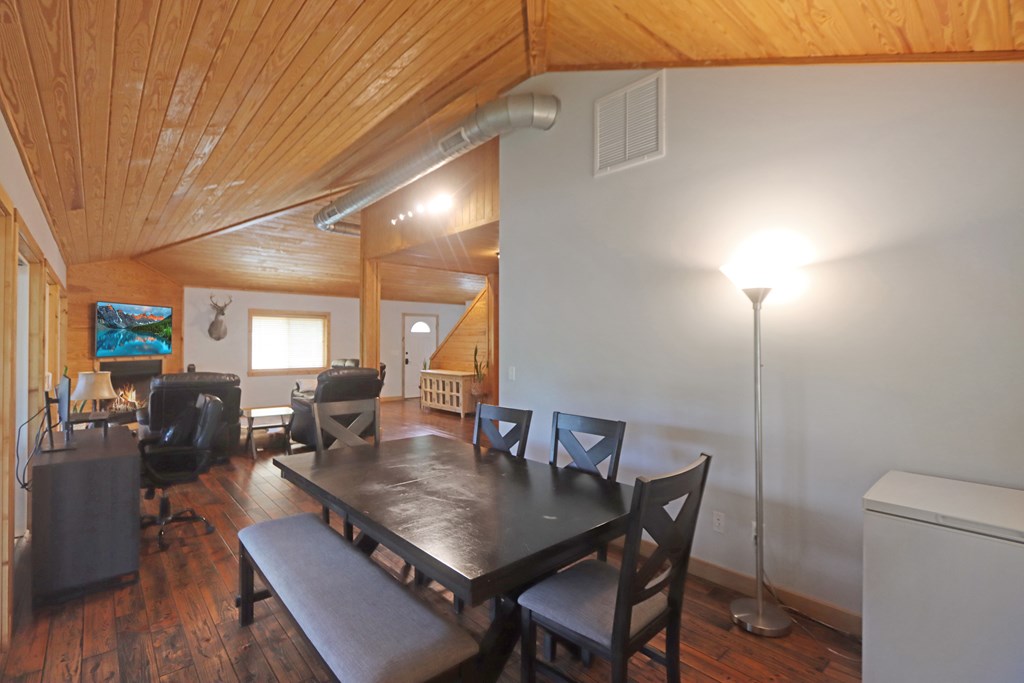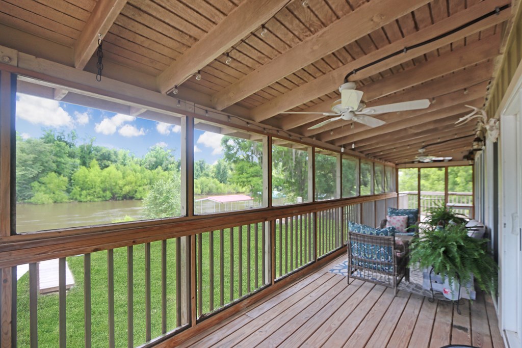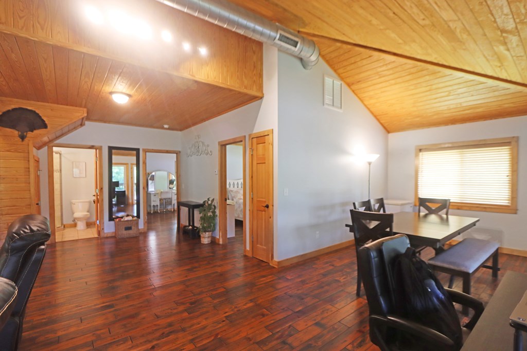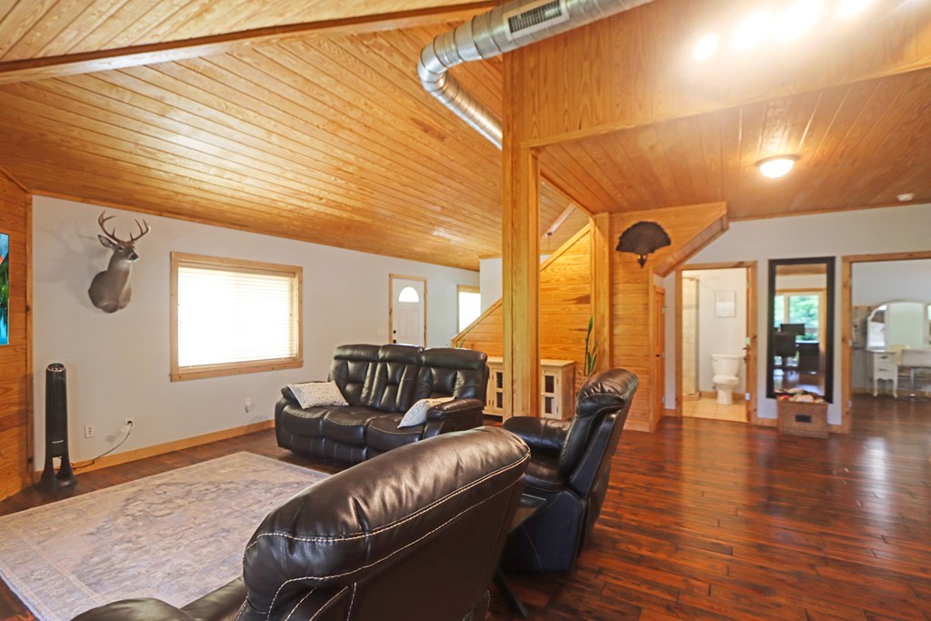 Welcome to this beautifully appointed 3-bedroom, 2-bath riverfront retreat where timeless charm meets modern convenience. Nestled along the water's edge, this elevated home offers panoramic river views and a private boat slip just steps from your door. Inside, you'll find warm hardwood floors throughout and striking tongue-and-groove ceilings that add rustic character and charm. Natural light pours in from large windows and sliding glass doors, filling the open living area with a bright, airy feel. The living space flows effortlessly onto a screened porch and open deck?perfect for entertaining or enjoying peaceful mornings watching the water. The kitchen features a gas range, ample cabinetry, and great workspace for preparing meals with ease. A stackable washer and dryer add functionality without sacrificing space. The main level includes a spacious master suite with en suite bath, a welcoming guest room, and a second full bath. Upstairs, a cozy loft/bunk room provides extra sleeping or hangout space with a view. The home's elevated design offers covered parking below, ideal for gatherings or additional storage. A Generac whole-home generator ensures comfort and security year-round. A detached 12 x 20 storage building and large pole barn provide ample space for your boat, mower, tools, and outdoor gear. Whether you're looking for a weekend getaway, vacation rental, or full-time waterfront haven?this property delivers the perfect balance of comfort, character, and lifestyle.