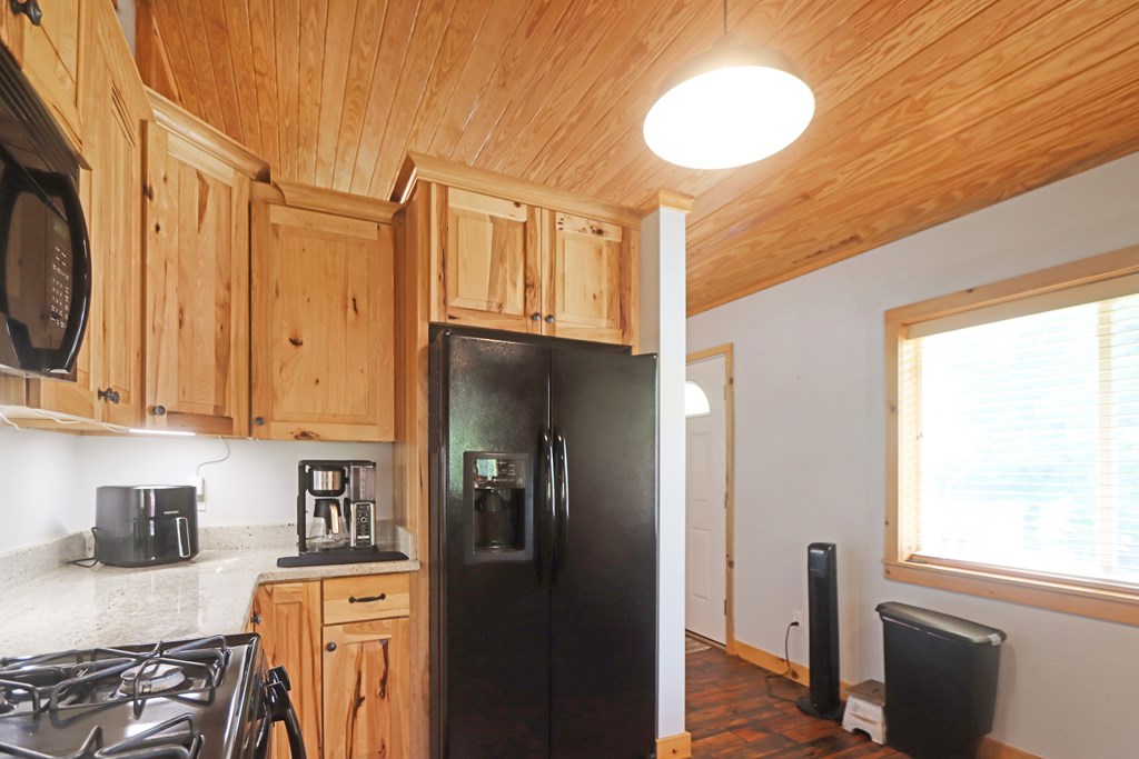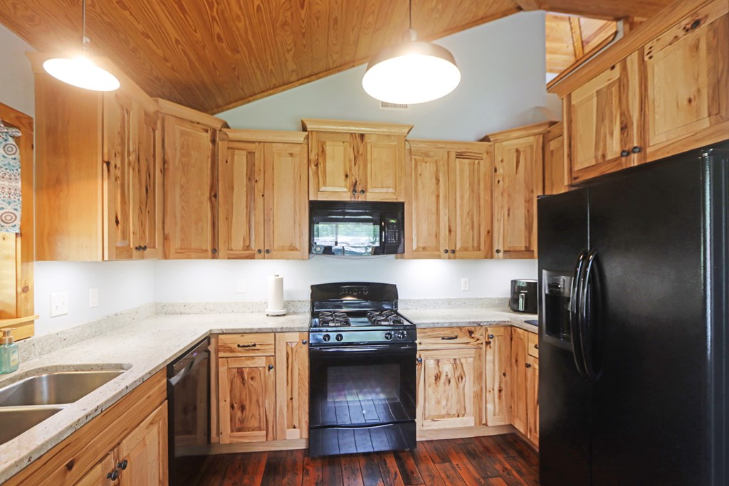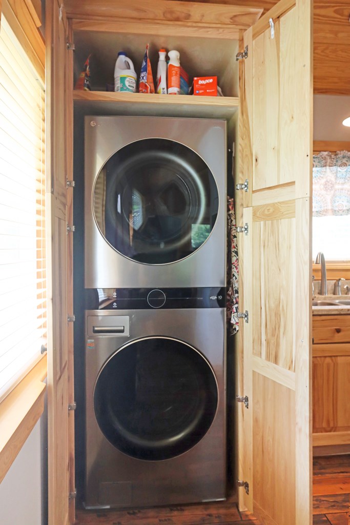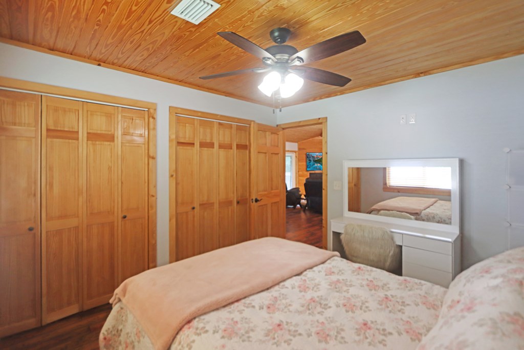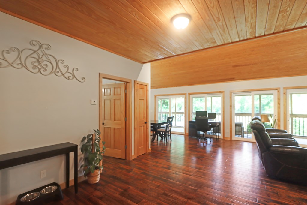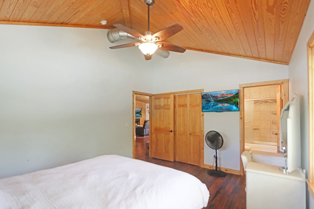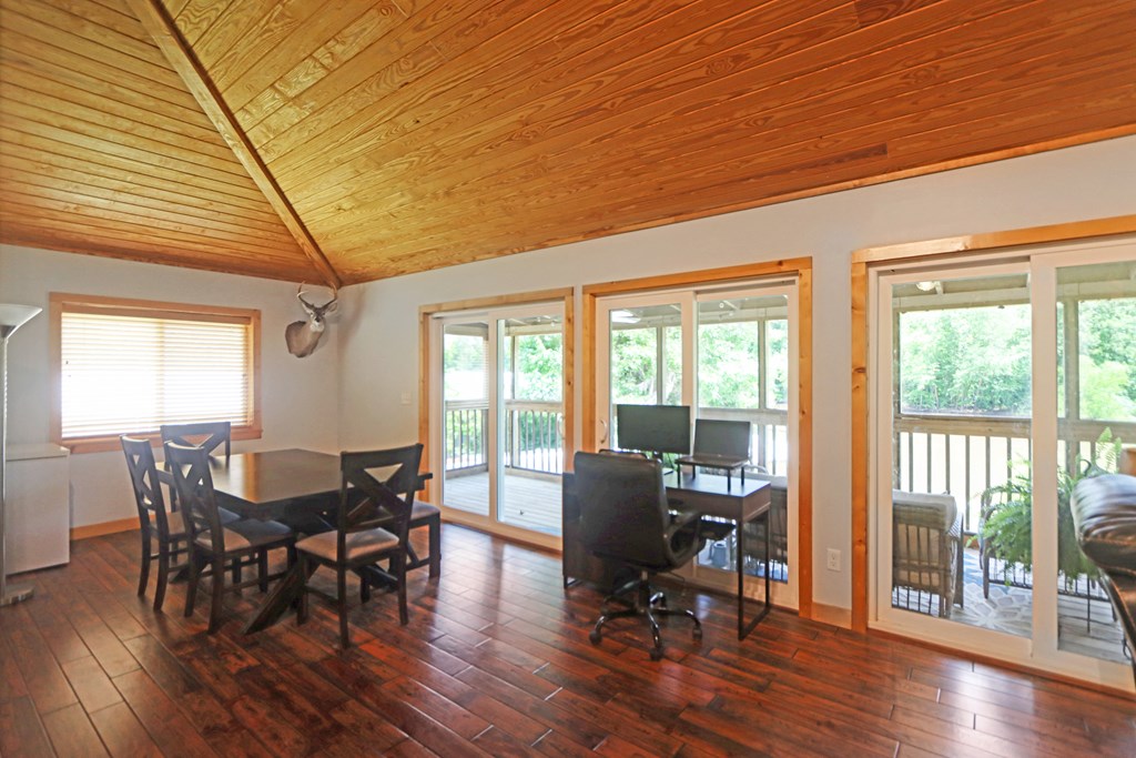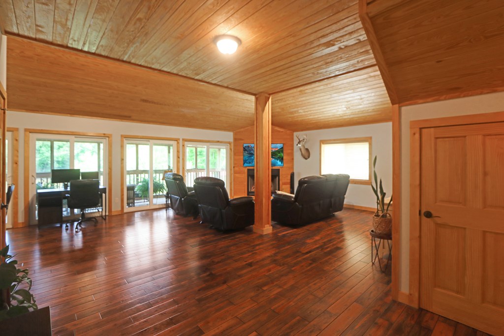 Welcome to this beautifully appointed 3-bedroom, 2-bath riverfront retreat where timeless charm meets modern convenience. Nestled along the water's edge, this elevated home offers panoramic river views and a private boat slip just steps from your door. Inside, you'll find warm hardwood floors throughout and striking tongue-and-groove ceilings that add rustic character and charm. Natural light pours in from large windows and sliding glass doors, filling the open living area with a bright, airy feel. The living space flows effortlessly onto a screened porch and open deck?perfect for entertaining or enjoying peaceful mornings watching the water. The kitchen features a gas range, ample cabinetry, and great workspace for preparing meals with ease. A stackable washer and dryer add functionality without sacrificing space. The main level includes a spacious master suite with en suite bath, a welcoming guest room, and a second full bath. Upstairs, a cozy loft/bunk room provides extra sleeping or hangout space with a view. The home's elevated design offers covered parking below, ideal for gatherings or additional storage. A Generac whole-home generator ensures comfort and security year-round. A detached 12 x 20 storage building and large pole barn provide ample space for your boat, mower, tools, and outdoor gear. Whether you're looking for a weekend getaway, vacation rental, or full-time waterfront haven?this property delivers the perfect balance of comfort, character, and lifestyle.
