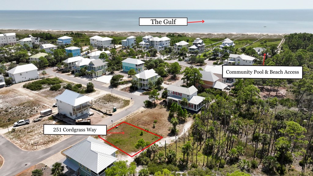 BRING ALL COASTAL VISIONS!! Premier home site located at 251 Cord Grass Way in Jubilation—a private, gated community tucked away in the serene southern section of Cape San Blas. Celebrated for its wide, uncrowded beaches and peaceful charm, Jubilation sets the stage for your perfect coastal retreat. Picture mornings filled with the gentle sound of waves and fresh Gulf breezes drifting through your future beach home. Spend the day exploring the scenic miles-long bike trail, lounging in the sun, or immersing yourself in the relaxed lifestyle that makes Cape San Blas so special. From paddleboarding and kayaking to sunset strolls with your toes in the sand, endless adventures are waiting just steps from your door. Residents enjoy access to a beautifully appointed clubhouse and sparkling community pool, reserved exclusively for owners. Take a quick golf cart ride to the pet-friendly Gulf beaches, where golden skies at sunset create unforgettable evenings. Whether you're dreaming of a weekend escape or a forever coastal home, this is your opportunity to design the beach lifestyle you've always wanted. And with Port St. Joe only a short drive away, you'll have boutique shopping, fresh seafood dining, and a warm, welcoming community close at hand. Call today to schedule your private tour & LIVE THE BEACH LIFE in Jubilation—where every day feels like a vacation.