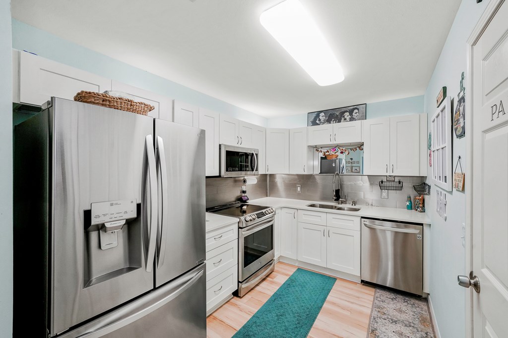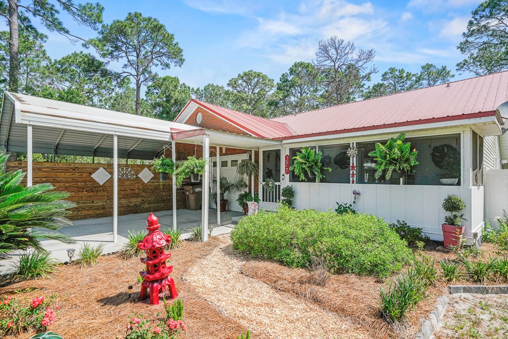 Perfectly positioned on desirable Country Club Road, this beautifully updated 2-bedroom, 2-bathroom duplex stretches all the way from the street to the edge of the scenic St. Joseph Bay Golf Course—giving you front-row views of the fairway. Imagine relaxing in your backyard watching the birds and the golfers steps away. Whether you're an avid golfer or just love the peaceful vibe, this location delivers it all—plus, the Country Club is right there with access to a pool, tennis courts, all the amenities that make coastal living truly special. This home has it all and is turn key, beautifully furnished. From the moment you step inside, vaulted ceilings and an open floor plan welcome you into a light-filled living and dining space, perfect for entertaining or everyday comfort. The updated kitchen is a standout with quartz countertops, stainless LG appliances, and a pantry for ample storage. The master suite offers a relaxing escape with a walk-in closet and soaking tub, while the guest bath features a beautiful marble walk-in shower. New LVP flooring runs throughout the home, paired with ceiling fans in every room and a whole-house water filtration system with a pressure booster pump. Enjoy year-round relaxation in the all-season room with its own mini-split system, and rest easy knowing this home was rebuilt from the studs in 2019 with a new roof in 2022. Outside, a brand-new concrete driveway leads to a one-car garage, a fenced backyard offers privacy, and a 10x14 shed with loft provides extra storage for tools or toys. The oversized yard is ideal for boat parking or outdoor entertaining, and a new irrigation pump keeps the grounds lush and green. Whether you're looking for a full-time residence, weekend escape, or income-producing rental, this home checks all the boxes—and just a hop skip to the beach, and world class boating, at a price that makes it even more exciting. Call for your private tour & LIVE THE BEACH LIFE!