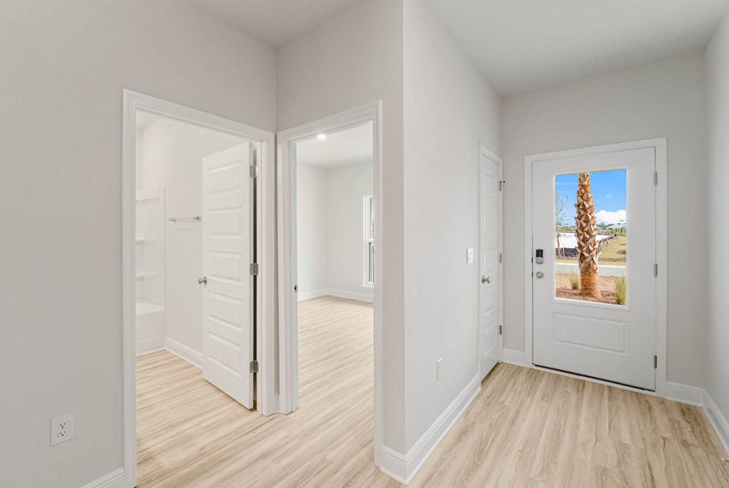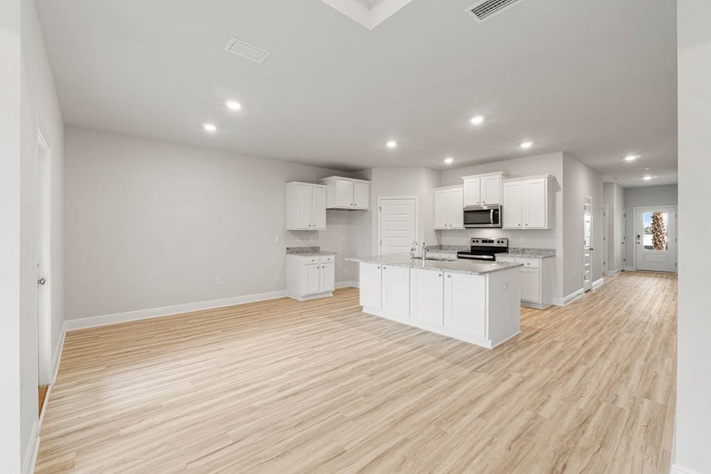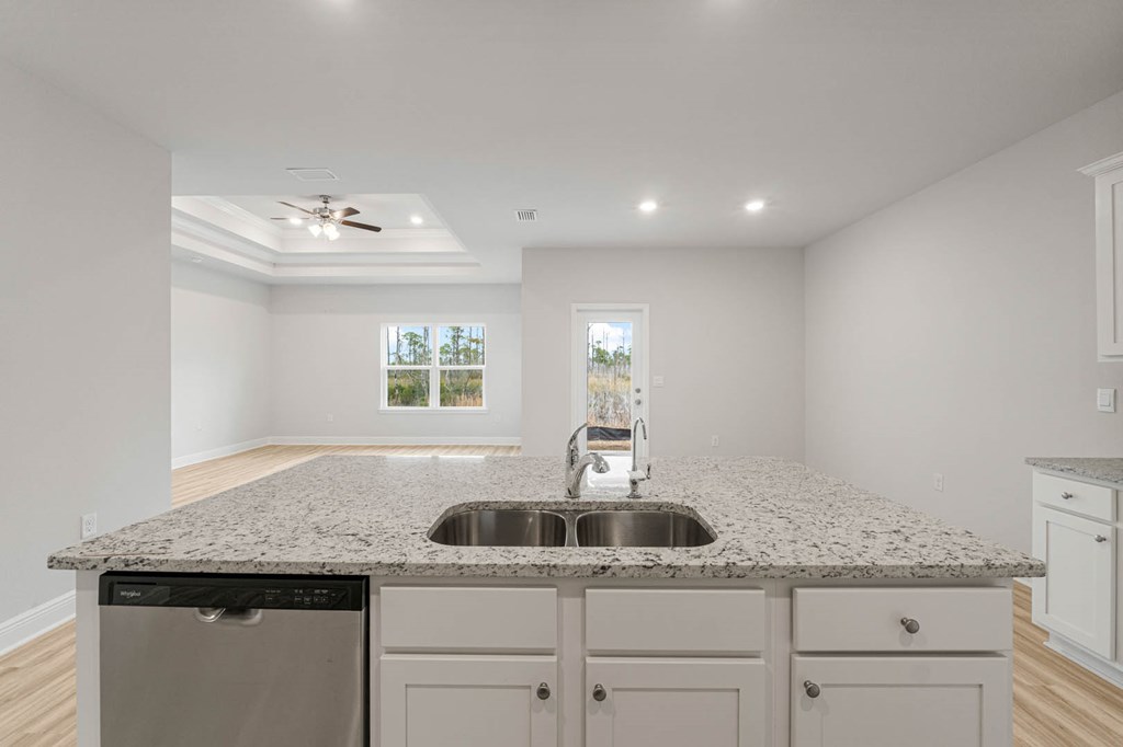 Welcome to 189 Needle Rush Drive, located at the enchanting WindMark Beach community in Port St. Joe, Florida. The Rhett is one of our popular one-story floor plans used in many communities in this area. With this 4 bedroom, 2 bath home, you will see 1,799 square feet of spacious living perfect for a small family to enjoy comfortably. As you walk inside the Rhett, you will see the long main hallway leading you to the open living room and kitchen. The 9' ceilings throughout the home open your living space up and there are tray ceilings in the Primary bedroom and living room as an added feature. Engineered vinyl plank flooring throughout the entire home offer a sleek, low-maintenance way to keep your floors looking great. The kitchen and bathrooms feature granite countertops and white cabinetry, a walk-in pantry, and a large island ideal for family and guests to enjoy your meals together. The primary bedroom has its own bathroom featuring a spacious walk-in closet, a double vanity, and a separate walk-in shower and tub. Each room in the house has large windows that allow plenty of natural light in to brighten your mood and home up. On the exterior of the home, you will see Hardie Board on all sides of the home. Each home comes standard with gutters, a sodded yard, dimensional shingles, and more. The Rhett features a covered back patio and certain Rhett plans have a covered front porch. Whatever room in this house you're in, you will feel right at home. Contact us today to find your home at WindMark Beach!