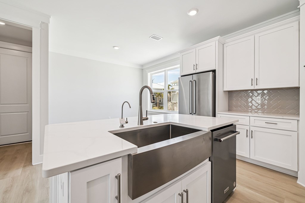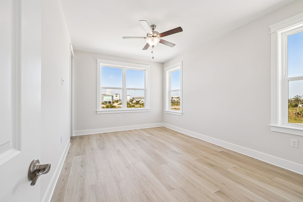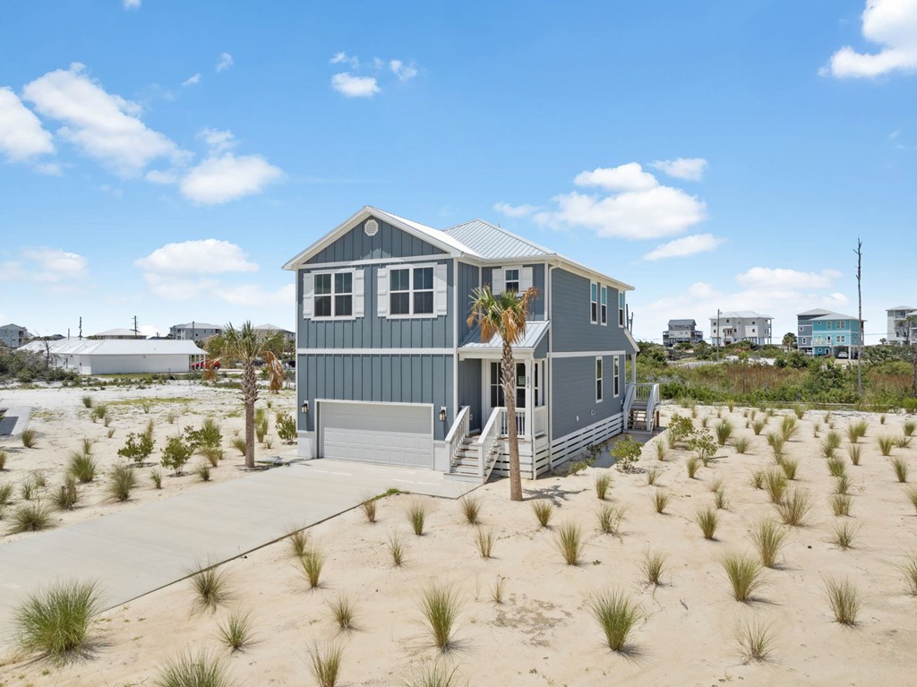 NEW CONSTRUCTION! Experience luxury from the moment you step inside this home and discover elegant quartz countertops in both the kitchen and bathrooms, complemented by beautifully crafted cabinetry throughout the home. Durable engineered vinyl plank flooring offers the warm look of wood with the added benefit of being water- and scratch-resistant—ideal for low-maintenance living. In the kitchen, a herringbone tile backsplash that enhances the quartz countertops creates a refined and stylish space. Each home includes a Whirlpool stainless steel appliance package—complete with a dishwasher, microwave, and electric range—as well as Moen brushed nickel fixtures, including a convenient pull-out faucet. Interior walls showcase a sophisticated Stage 4 smooth finish. Bathrooms are designed with luxury in mind, featuring Florentine tile showers with frameless glass doors, elevated vanities, and comfort-height toilets. A main-level powder room offers a classic pedestal sink and comfort-height toilet. The staircase features stunning oak treads leading to a spacious upstairs retreat featuring a sitting area, four bedrooms and two bathrooms featuring a tub/shower combination with the same elevated toilet design. Exterior features include ColorPlus Hardie Plank siding, a covered front porch, covered back patio, metal roofing, an 8-foot raised glass prairie-style front door with brushed nickel hardware, an 8-foot full-glass back door, full home gutter system, and impact-resistant windows. Located in the serene community of Redfish Cove on Cape San Blas, this home is just a short stroll from the water. Enjoy easy access to nearby parks and recreational areas via bike, or cast a line from the bay or beach. The area is rich with outdoor activities, from paddleboarding to beach fishing to shelling to fishing charters and so much more.
