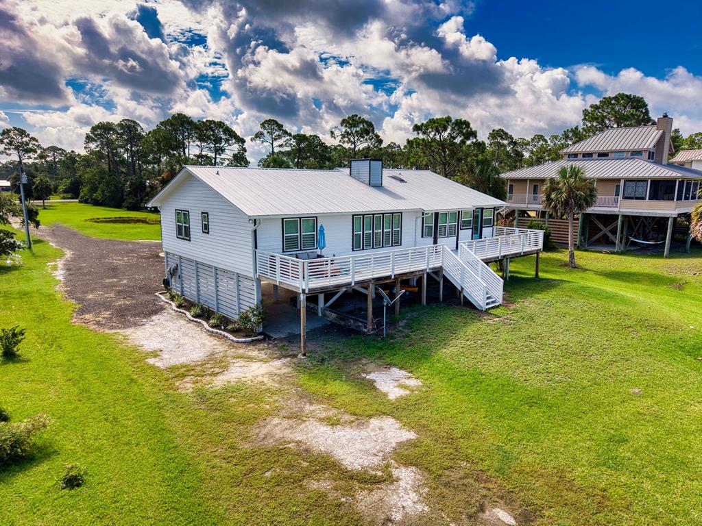 Completely remodeled and finished as of July 2025, this stunning 4-bedroom, 2.5-bath coastal retreat offers expansive views of St. Joseph Bay and sits on approximately 2 acres of rare, mixed-use property. Situated perfectly between Cape San Blas and Port St. Joe, this location truly has it all—privacy, views, and convenience. From the comfort of your living room or expansive back deck, enjoy picture-perfect sunsets and views of Cape San Blas and Black's Island. Inside, the open floor plan is filled with natural light, with a full wall of windows capturing panoramic water views. At 2,500 SqFt, there's space to relax, entertain, or simply enjoy the beauty of the Forgotten Coast. In addition, a versatile flex room offers even more possibilities—think second living space, playroom, home office, etc. Zoned for mixed commercial and residential use, this parcel offers endless opportunity: subdivide into 3 parcels, build additional dwellings, or consider a unique commercial venture. Two existing RV hookups (35-amp and 50-amp) are already in place at the house—perfect for guests or future income potential. And don't forget, it's just a golf cart or bike ride away from Hunts on St Joe Bay. With its rare land use, unmatched views, and completely updated home, this property is more than a home—it's an opportunity. Don't let it slip away.