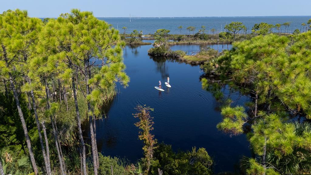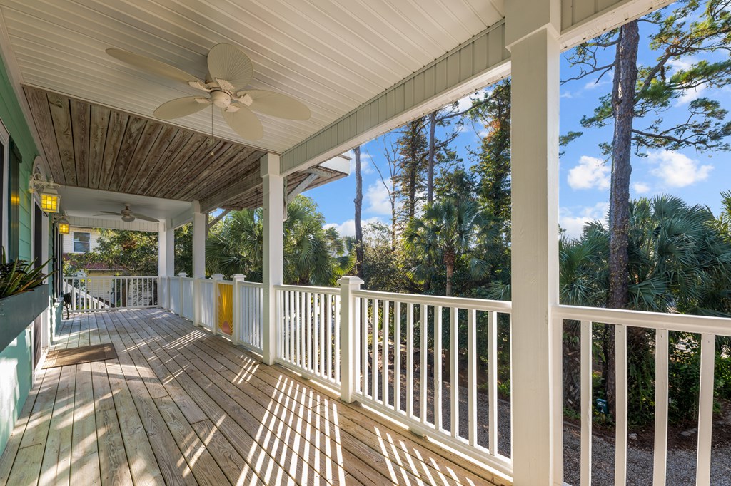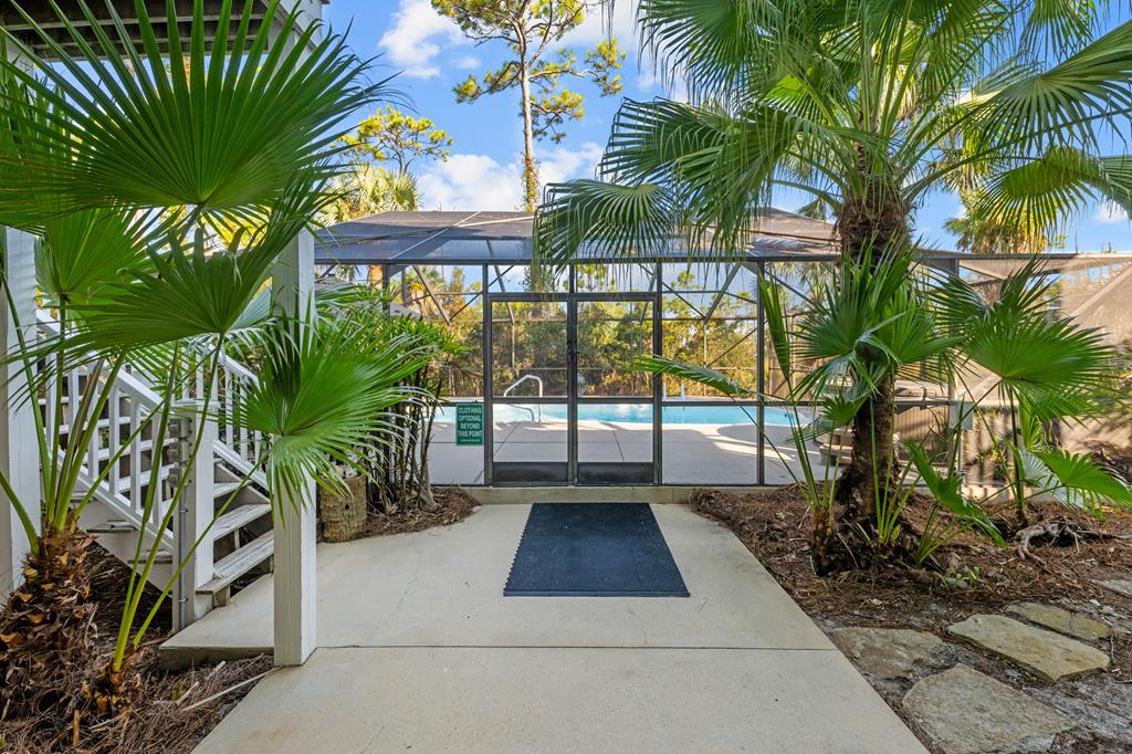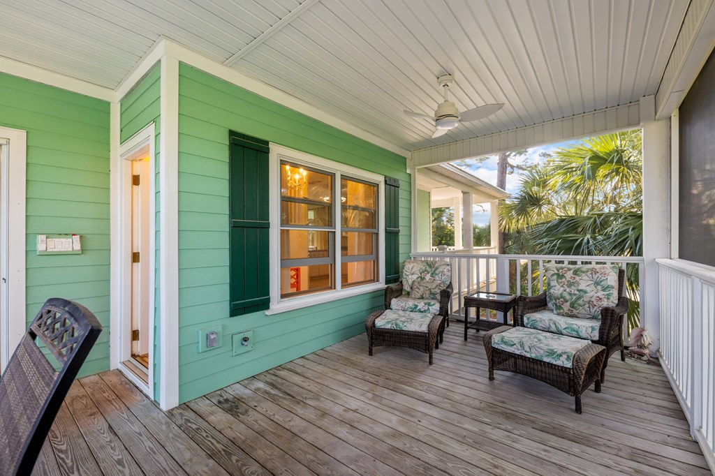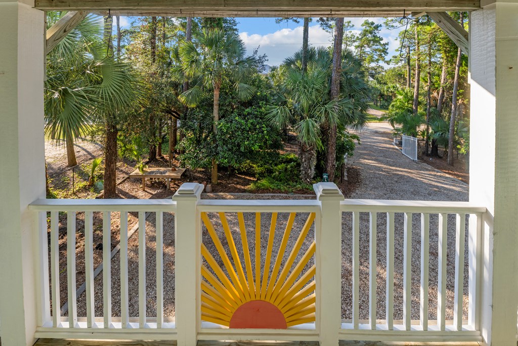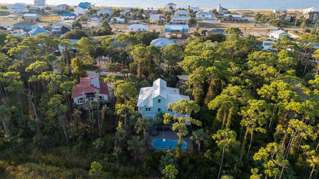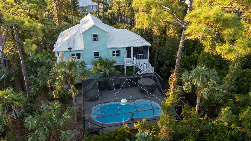 Your private tropical sanctuary with forever bay views awaits! This one-of-a-kind home was custom built by respected local builder Heath Galloway and is full of thoughtful details and timeless craftsmanship. Offering three spacious bedrooms and two and a half baths, it's designed for true island living, with every room opening onto the expansive porches. The home boasts ample natural light, tile flooring throughout the main areas, and brand-new kitchen appliances installed in 2025 and the peace of mind of new HVAC systems in 2025. The master suite upstairs is a true retreat, tucked away with its own jacuzzi tub, a private balcony with peek-a-boo Gulf views, and panorama vistas of the bay and tidal lagoons. The property itself is as special as the home with fully fenced and gated, shaded by mature palms, pines, bamboo, ferns, and fruiting banana and fig trees. It backs directly to the protected Apalachicola National Estuarine Research Reserve's Unit 4, a designated public park, with bay access ideal for kayaking, paddleboarding, and fishing. Your bay views are forever preserved, with bald eagles as your closest neighbors. The centerpiece of the property is the enclosed heated pool and hot tub, surrounded by lush tropical gardens, making it feel like your own private resort. Beneath the home, spacious storage and flexible entertaining areas provide the perfect setting for firepit gatherings, rinsing off in the outdoor shower after a day at the beach, or tending to garden beds. A lower-level restroom is continently located for uninterrupted pool days. For anglers, multiple fish-cleaning stations and a dedicated storage room complete the picture. All of this is just a quick golf cart or bike ride from St. George Island's pristine beaches and lively downtown. Whether you're searching for your forever home or a unique rental investment, 625 E. Pine Ave is truly a rare island gem, only steps from the beach, that blends comfort, privacy, and the best of coastal living.