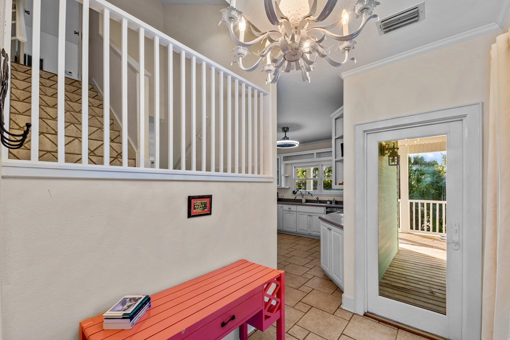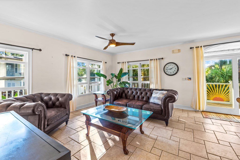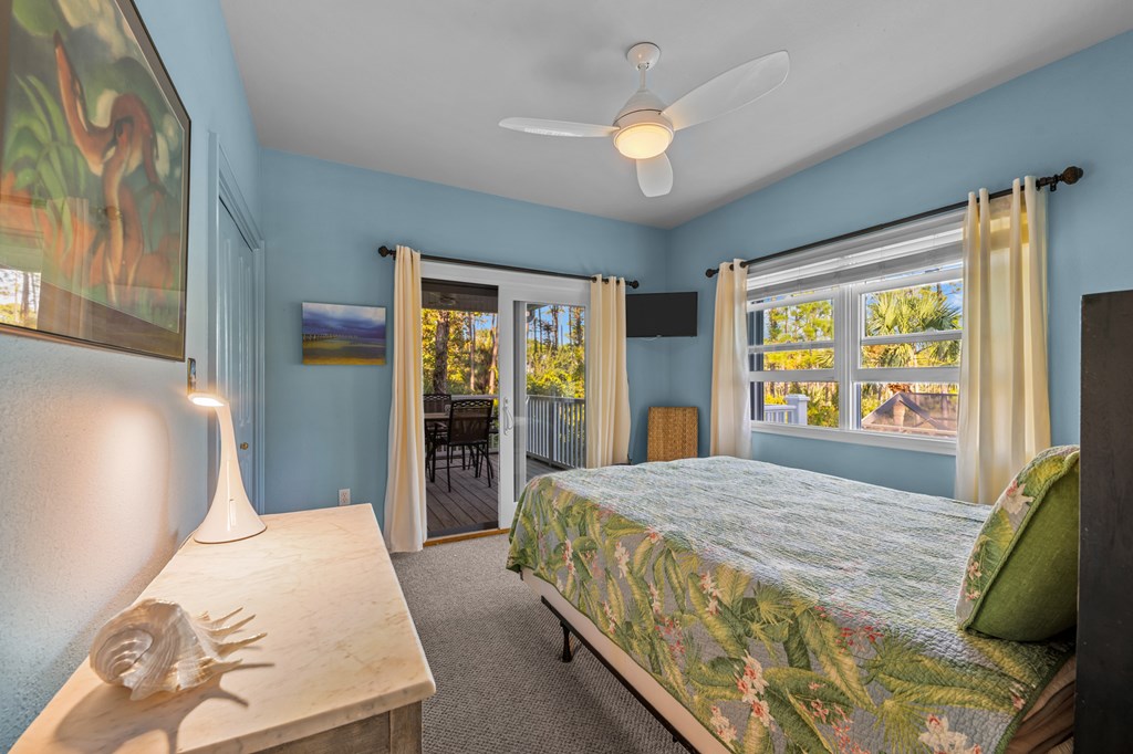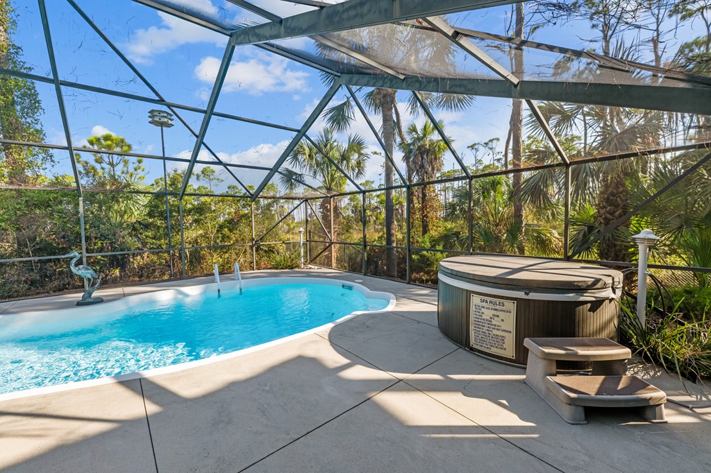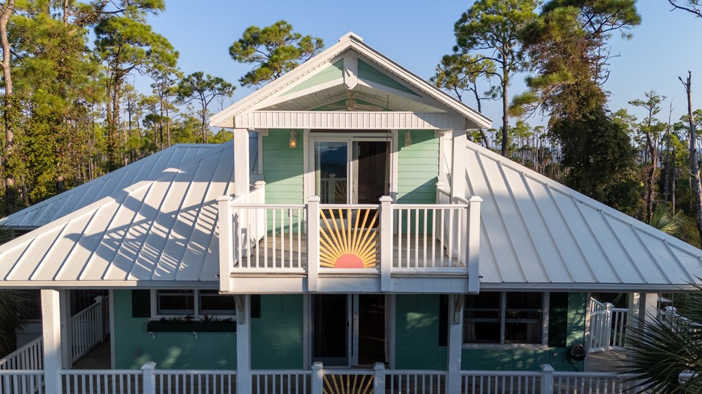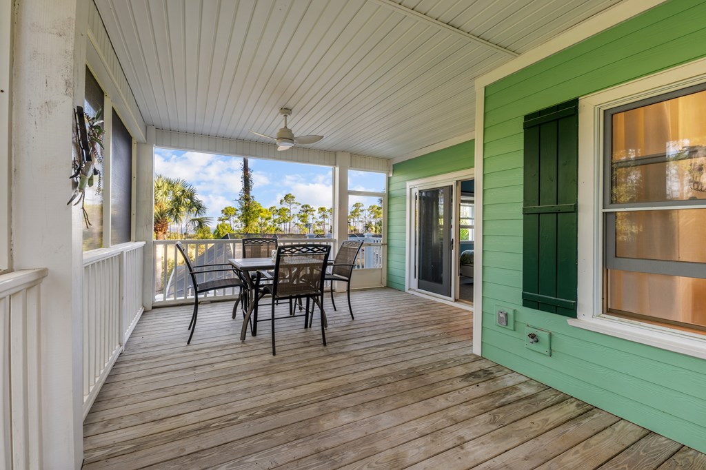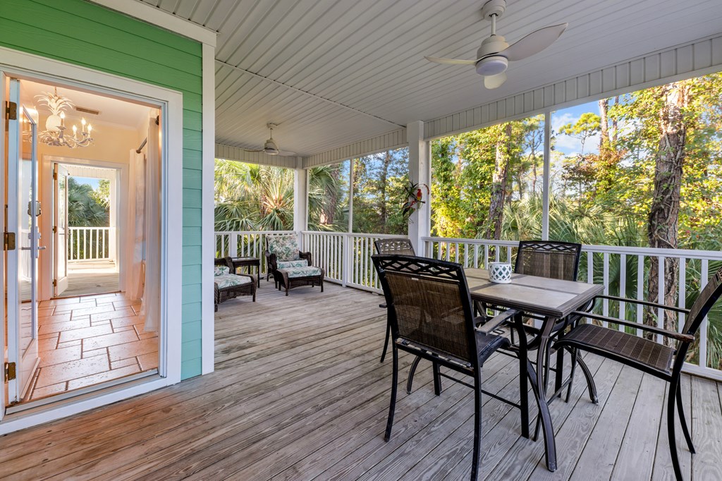 Your private tropical sanctuary with forever bay views awaits! This one-of-a-kind home was custom built by respected local builder Heath Galloway and is full of thoughtful details and timeless craftsmanship. Offering three spacious bedrooms and two and a half baths, it's designed for true island living, with every room opening onto the expansive porches. The home boasts ample natural light, tile flooring throughout the main areas, and brand-new kitchen appliances installed in 2025 and the peace of mind of new HVAC systems in 2025. The master suite upstairs is a true retreat, tucked away with its own jacuzzi tub, a private balcony with peek-a-boo Gulf views, and panorama vistas of the bay and tidal lagoons. The property itself is as special as the home with fully fenced and gated, shaded by mature palms, pines, bamboo, ferns, and fruiting banana and fig trees. It backs directly to the protected Apalachicola National Estuarine Research Reserve's Unit 4, a designated public park, with bay access ideal for kayaking, paddleboarding, and fishing. Your bay views are forever preserved, with bald eagles as your closest neighbors. The centerpiece of the property is the enclosed heated pool and hot tub, surrounded by lush tropical gardens, making it feel like your own private resort. Beneath the home, spacious storage and flexible entertaining areas provide the perfect setting for firepit gatherings, rinsing off in the outdoor shower after a day at the beach, or tending to garden beds. A lower-level restroom is continently located for uninterrupted pool days. For anglers, multiple fish-cleaning stations and a dedicated storage room complete the picture. All of this is just a quick golf cart or bike ride from St. George Island's pristine beaches and lively downtown. Whether you're searching for your forever home or a unique rental investment, 625 E. Pine Ave is truly a rare island gem, only steps from the beach, that blends comfort, privacy, and the best of coastal living.