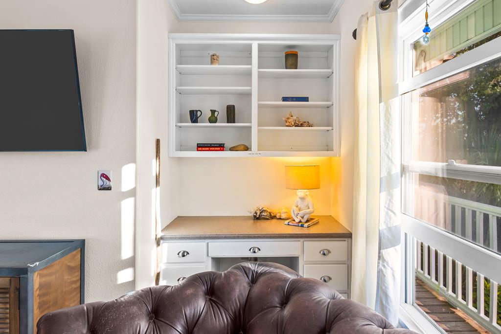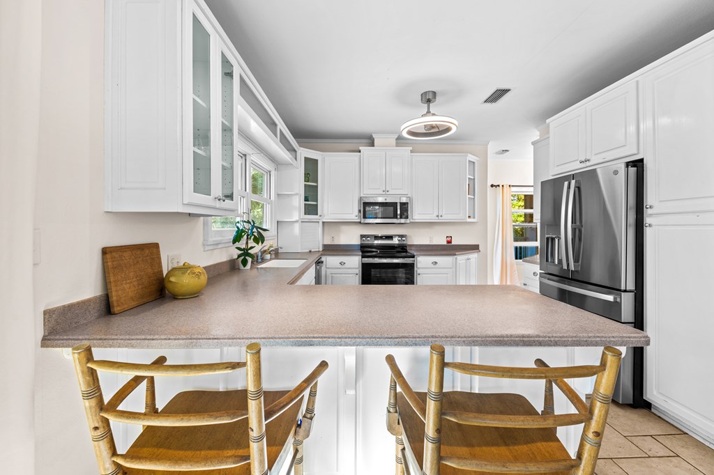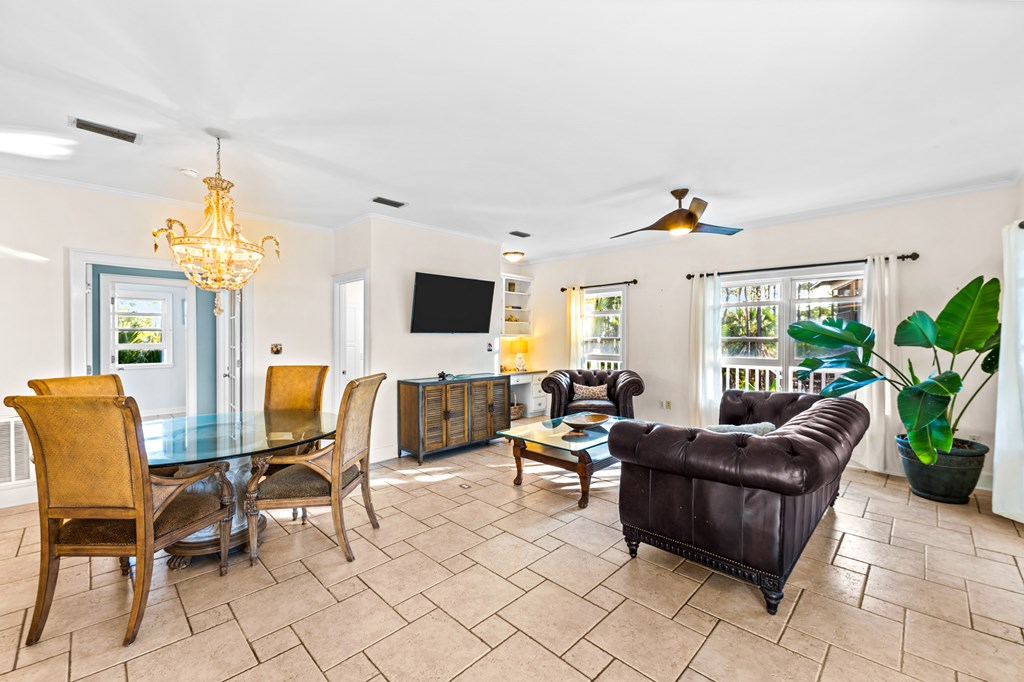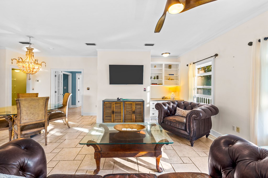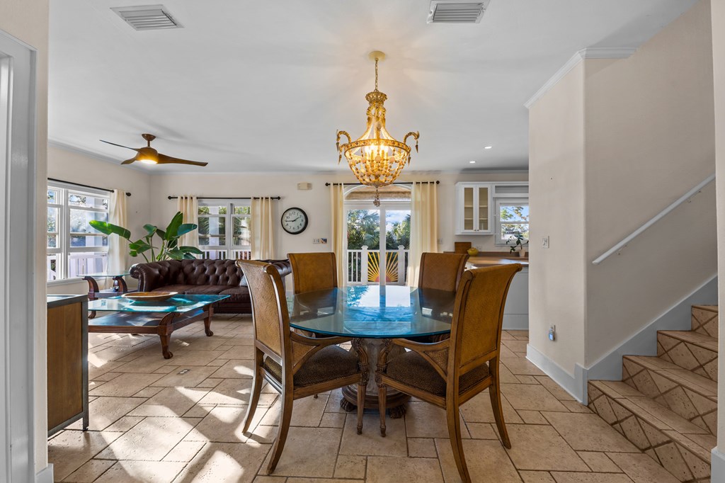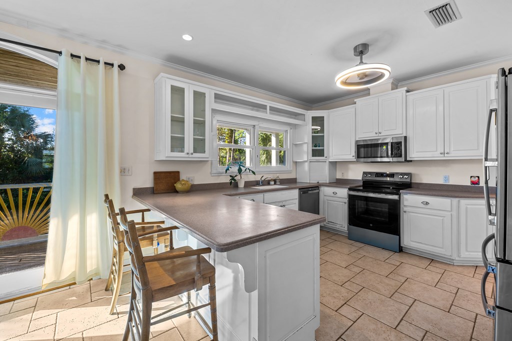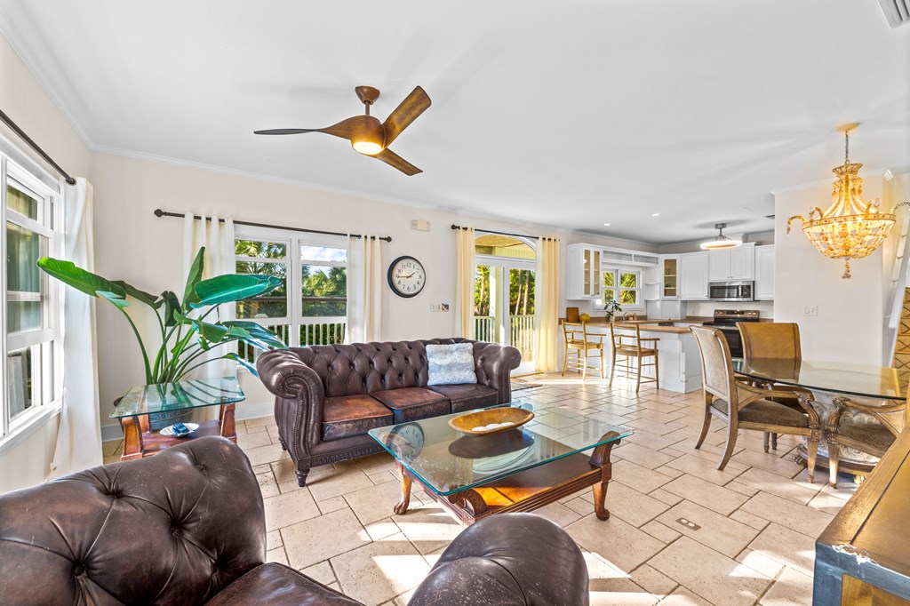 Your private tropical sanctuary with forever bay views awaits! This one-of-a-kind home was custom built by respected local builder Heath Galloway and is full of thoughtful details and timeless craftsmanship. Offering three spacious bedrooms and two and a half baths, it's designed for true island living, with every room opening onto the expansive porches. The home boasts ample natural light, tile flooring throughout the main areas, and brand-new kitchen appliances installed in 2025 and the peace of mind of new HVAC systems in 2025. The master suite upstairs is a true retreat, tucked away with its own jacuzzi tub, a private balcony with peek-a-boo Gulf views, and panorama vistas of the bay and tidal lagoons. The property itself is as special as the home with fully fenced and gated, shaded by mature palms, pines, bamboo, ferns, and fruiting banana and fig trees. It backs directly to the protected Apalachicola National Estuarine Research Reserve's Unit 4, a designated public park, with bay access ideal for kayaking, paddleboarding, and fishing. Your bay views are forever preserved, with bald eagles as your closest neighbors. The centerpiece of the property is the enclosed heated pool and hot tub, surrounded by lush tropical gardens, making it feel like your own private resort. Beneath the home, spacious storage and flexible entertaining areas provide the perfect setting for firepit gatherings, rinsing off in the outdoor shower after a day at the beach, or tending to garden beds. A lower-level restroom is continently located for uninterrupted pool days. For anglers, multiple fish-cleaning stations and a dedicated storage room complete the picture. All of this is just a quick golf cart or bike ride from St. George Island's pristine beaches and lively downtown. Whether you're searching for your forever home or a unique rental investment, 625 E. Pine Ave is truly a rare island gem, only steps from the beach, that blends comfort, privacy, and the best of coastal living.
