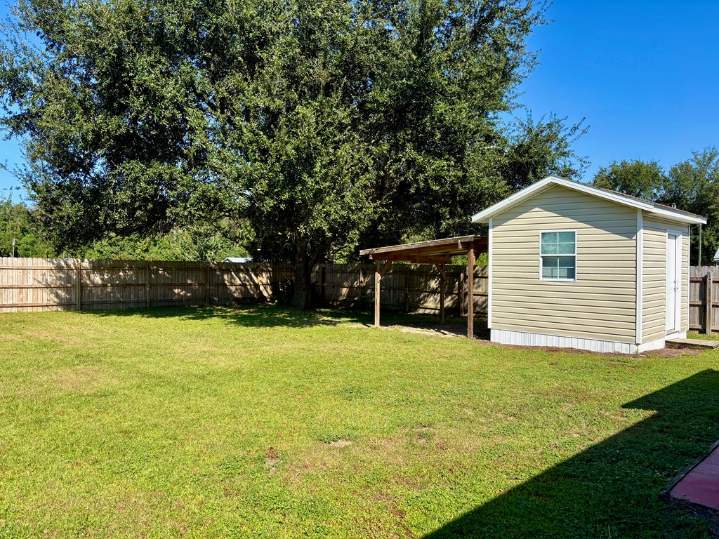 Move-In Ready in Oak Gardens Subdivision! This beautifully maintained 4 bedrooms, 2 bath home offers the perfect combination of comfort, convenience, and modern upgrades. Located in the desirable Oak Gardens neighborhood of Wewahitchka, you will be minutes from schools, shopping, Lake Alice Park, Ace Hardware, and multiple boat launches, plus just 25–30 minutes to the white sandy beaches and downtown Port St. Joe. Step inside to an open floor plan with split bedrooms, creating both privacy and functionality. The spacious master suite boasts vaulted ceilings, a walk-in closet, and a private bath, your own serene retreat. The living room features new flooring (2025), while the guest bedrooms are freshly painted and carpeted for a clean, inviting feel. The kitchen is a chef's delight, with abundant cabinetry, ample counter space for meal prep, a breakfast bar, and modern appliances including dishwasher, microwave, electric stove, and refrigerator with water/ice dispenser. Enjoy the outdoors in your fenced backyard with a new shed/workshop (2023), perfect for storage, hobbies, or projects. Notable Updates & Features: New roof (2019), Dishwasher replaced (2021), Stove replaced (2023), Hot water heater replaced (2022), AC condenser replaced (2024), Back door replaced (2025), Freshly cleaned & painted throughout, X Flood Zone, no flood insurance required. Whether you are a first-time homebuyer or looking for a comfortable family home, this residence blends modern updates with timeless appeal. Don't miss the chance to make it yours. Check out the 3D tour today!