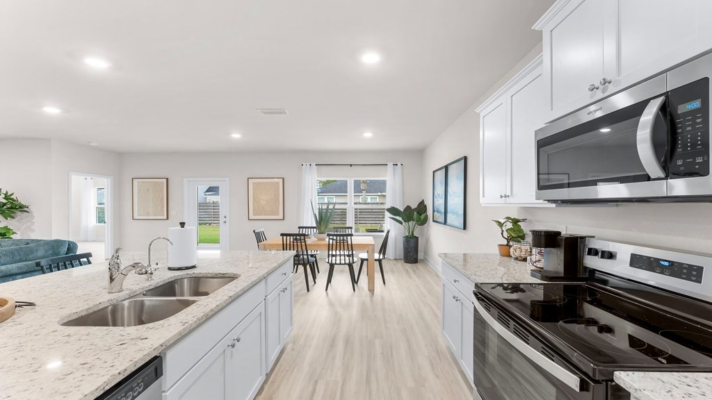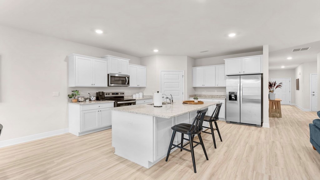 Move in ready home located at 682 Norris Drive in Port St Joe. If you love water recreation, you will find a public boat launch at Frank Pate Park less than 4 miles away. The Delray is a one-story home with a double garage designed with space for the family in mind and affordability. The outside of the home you will see the Hardie Board siding on all sides as well as dimensional shingles with a 30-year warranty, and more. As you enter this 4 bedroom, 2 bath home, you will see 2,044 square feet of spacious, comfortable living. Inside you will see 9' ceilings throughout, engineered vinyl plank flooring throughout the home. Granite countertops, white cabinetry and a spacious open living room and kitchen make this home perfect for having guests over. The kitchen has a center island that is perfect for serving kids or guests, a pantry and the stainless-steel appliances include smooth top range, microwave, and dishwasher. Located right next to the dining area, this makes serving meals with ease. The primary bedroom has a spacious bathroom and features a double vanity with Granite countertops. A walk-in closet with ventilated shelving is also located in the bathroom, giving you more room in the primary bedroom. The guest bathroom features a single vanity with granite countertops and a shower. Come and see why the Delray is the perfect new home for you.