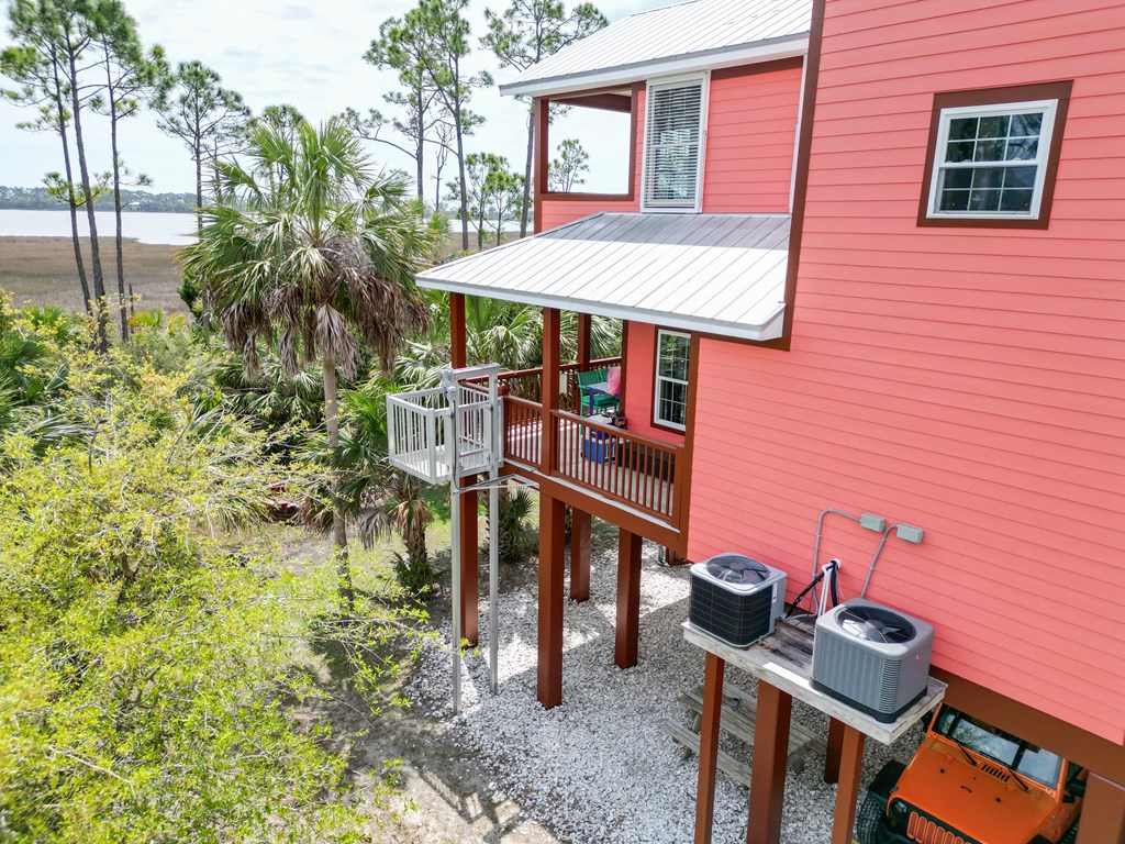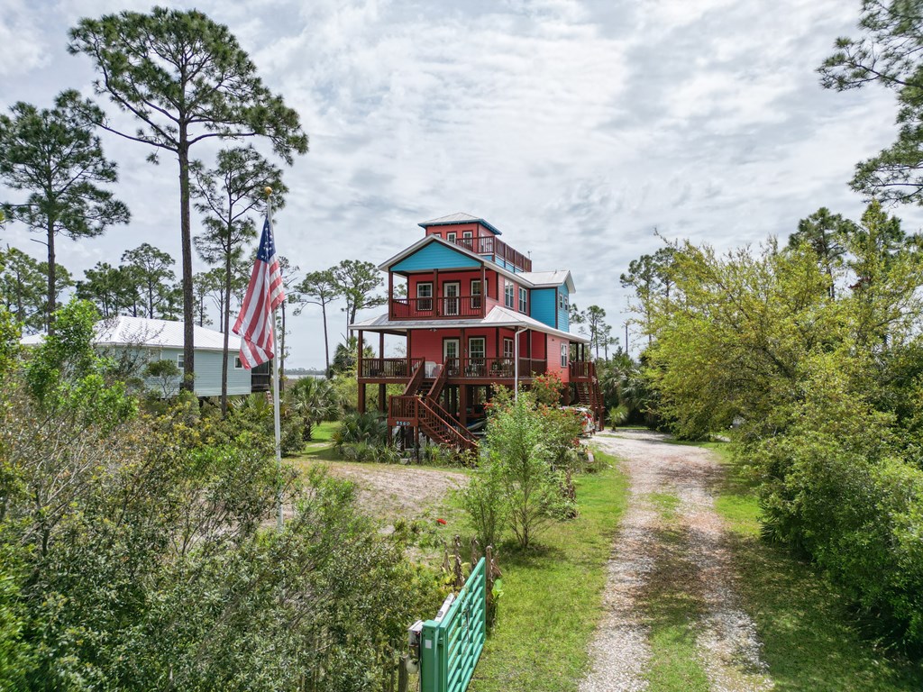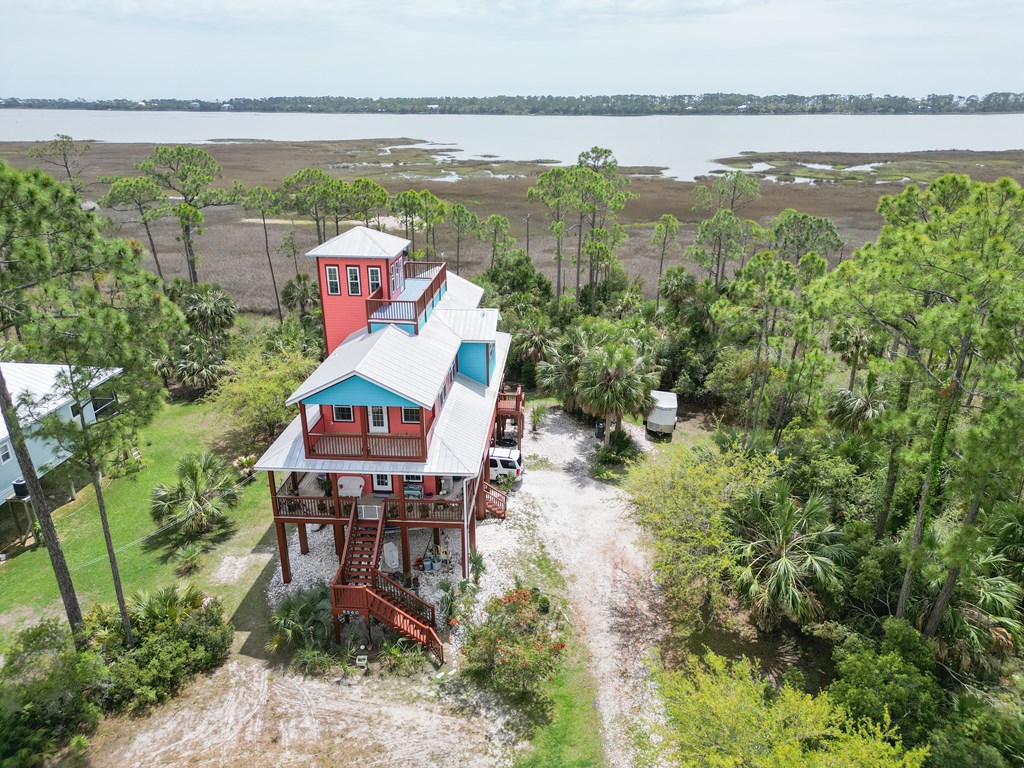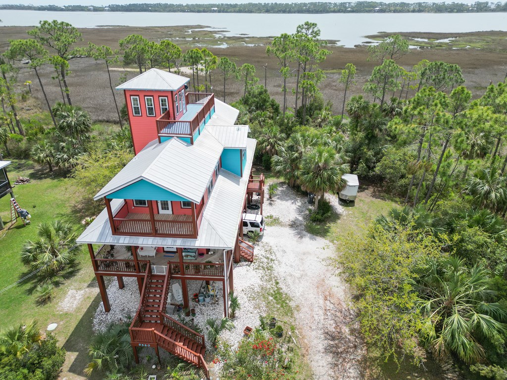 Enjoy breathtaking views of Indian Pass Lagoon from this custom 3-bedroom, 3-bath lagoon-front beach home, perfectly designed for comfort and coastal living. Situated on over three-quarters of an acre, the property offers privacy, space, and an array of thoughtful upgrades throughout. Inside, you'll find beautiful cinnamon wood flooring, hurricane-impact rated windows—several recently replaced—and Bahama shutters surrounding the master suite. The kitchen is equipped with a gas oven and stove, while a central vacuum system adds modern convenience. Major improvements include a Legacy Lift (2020), new upstairs HVAC (2022), new downstairs HVAC (2024), fresh exterior paint, and a dedicated well for irrigation. Additional touches like an outdoor shower make coastal living effortless. A two-story 20x20 storage shed, built in 2015, provides excellent potential for conversion into guest quarters or flexible space. Never used as a rental, this owner-occupied home has been meticulously cared for and is truly move-in ready. This property delivers the perfect blend of seclusion and accessibility—just a couple of minutes from Indian Pass and the famous Indian Pass Raw Bar, and only 15 minutes from both Apalachicola and Port St. Joe. From the decks, you'll enjoy amazing sunrises over the lagoon and sunsets that paint the sky in the evenings. Whether you're seeking a serene primary residence, a private coastal retreat, or a future vacation rental, this home offers unmatched views, upgrades, and lifestyle. Contact your REALTOR today to schedule a private showing.