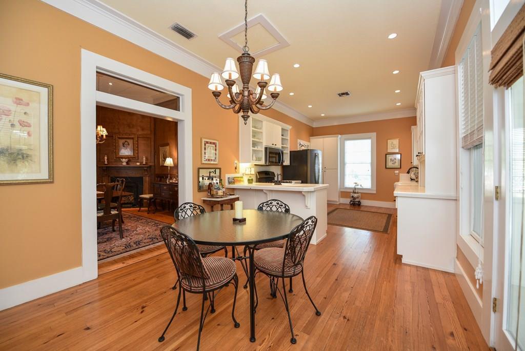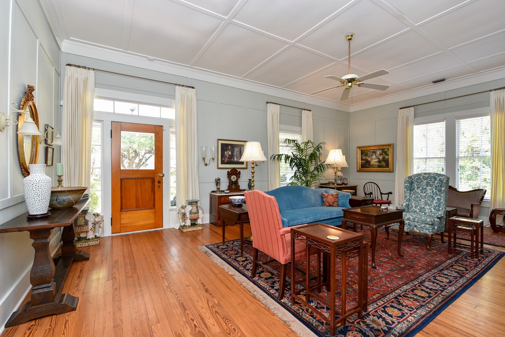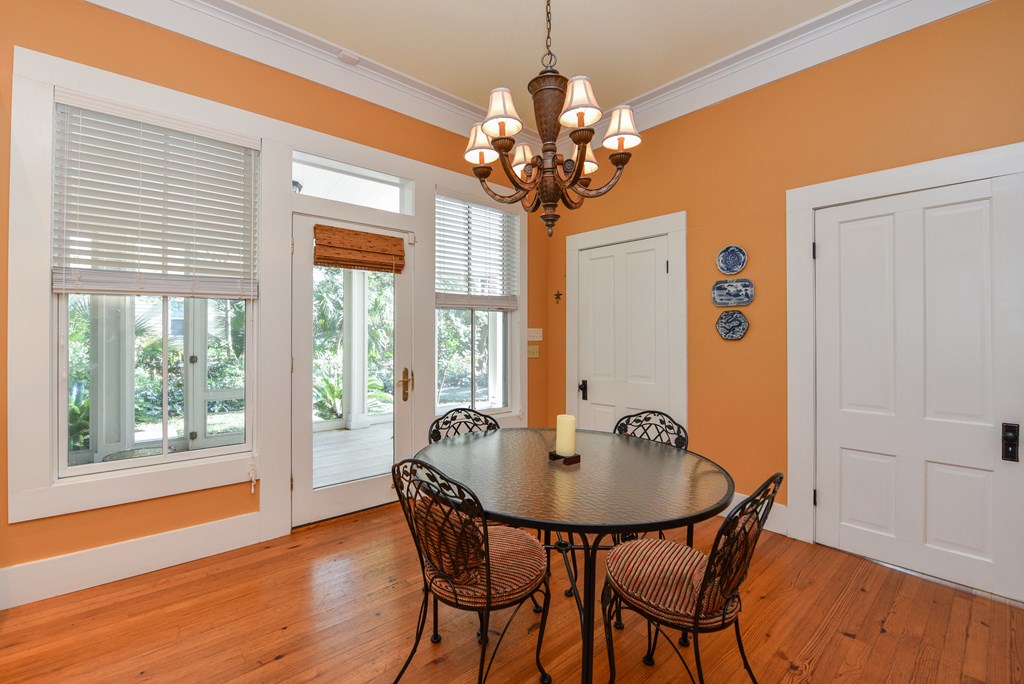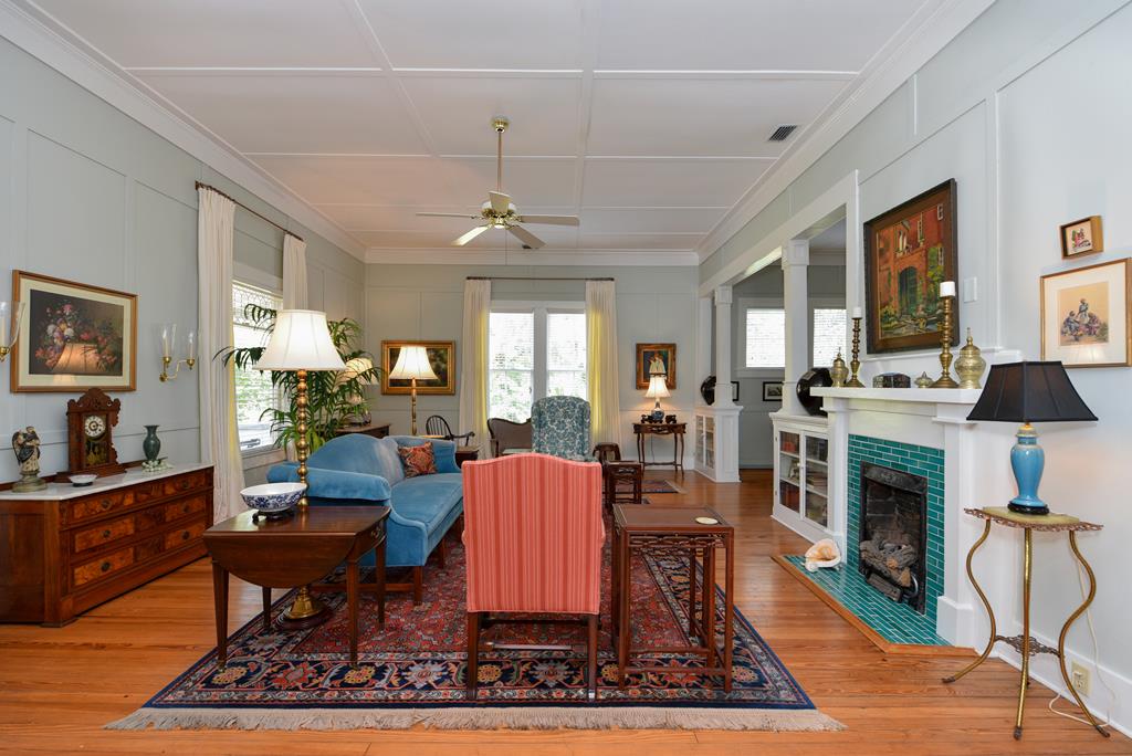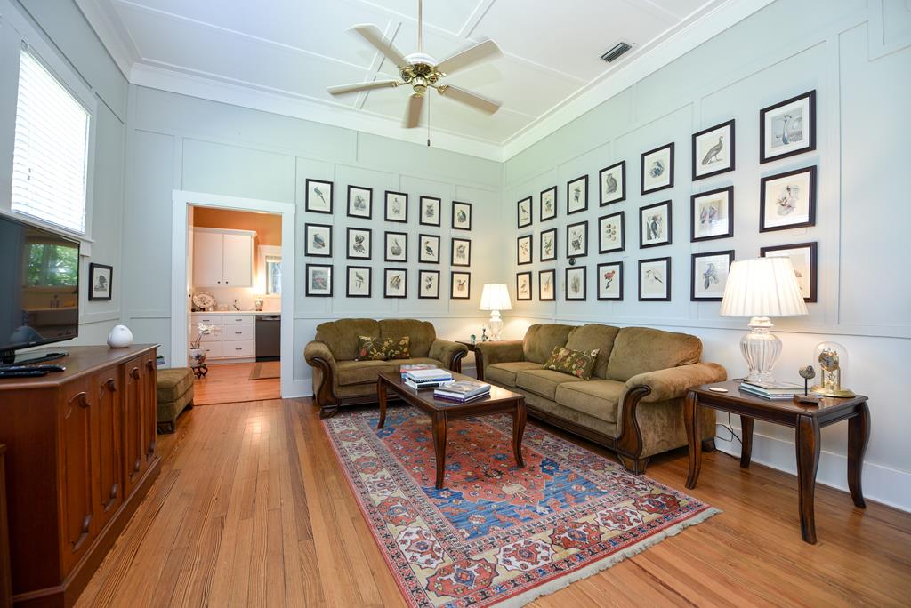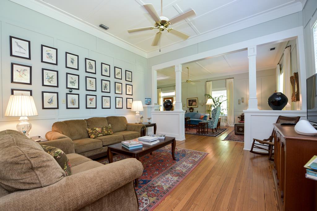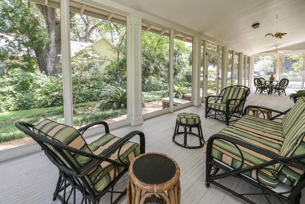 Gracious Restored Beauty in Apalachicola's South Historic District! Circa 1900 Craftsman inspired vintage home resting on two city corner lots, cloaked in mature canopy trees and lush landscaping. This 2 BR/2 BA home is just steps from Lafayette Park and Apalachicola Bay. Retreat in time to gentle Southern living, chatting with friends on evening walks, lingering on the front veranda, daydreaming on the screened porch, or lounging in the private gardens. This jewel is tastefully renovated while capturing a rich Craftsman architectural history. Lofty raised ceilings and hardwood floors throughout celebrate vernacular styling. Easy entertaining in the living room with gas fireplace and charming adjoining sitting room. The stately separate dining room is embellished with sophisticated Cypress paneling and a gas fireplace. A modern kitchen opening to a spacious screened porch features a dining nook, generous custom cabinetry, gas stove and black stainless appliances. BR 1 with ensuite bath rests off the living area. BR 2 is nestled quietly at the rear of the house convenient to a full bath. The landscaped surroundings with Rainbird irrigation system and shallow well provide a sense of serenity just minutes from Apalachicola local shops, restaurants, and music venues. This exquisite home is the perfect offering for Lovers of Apalach Culture and Casual Coastal Living!