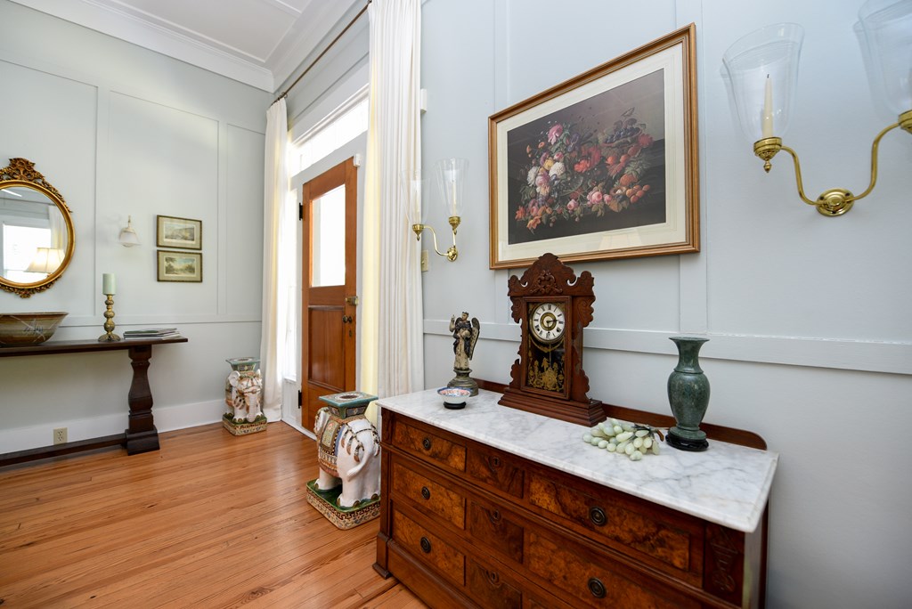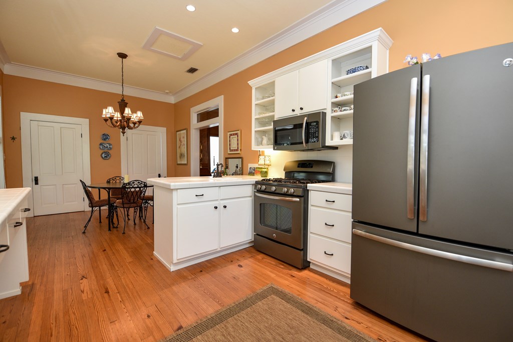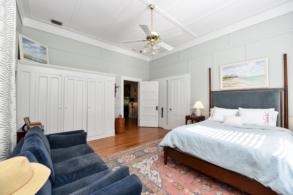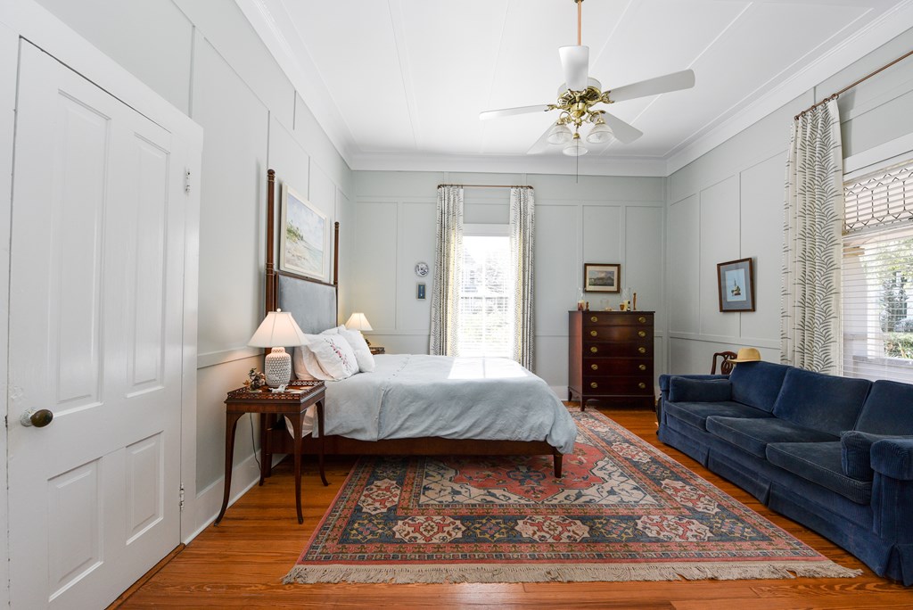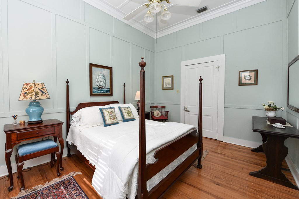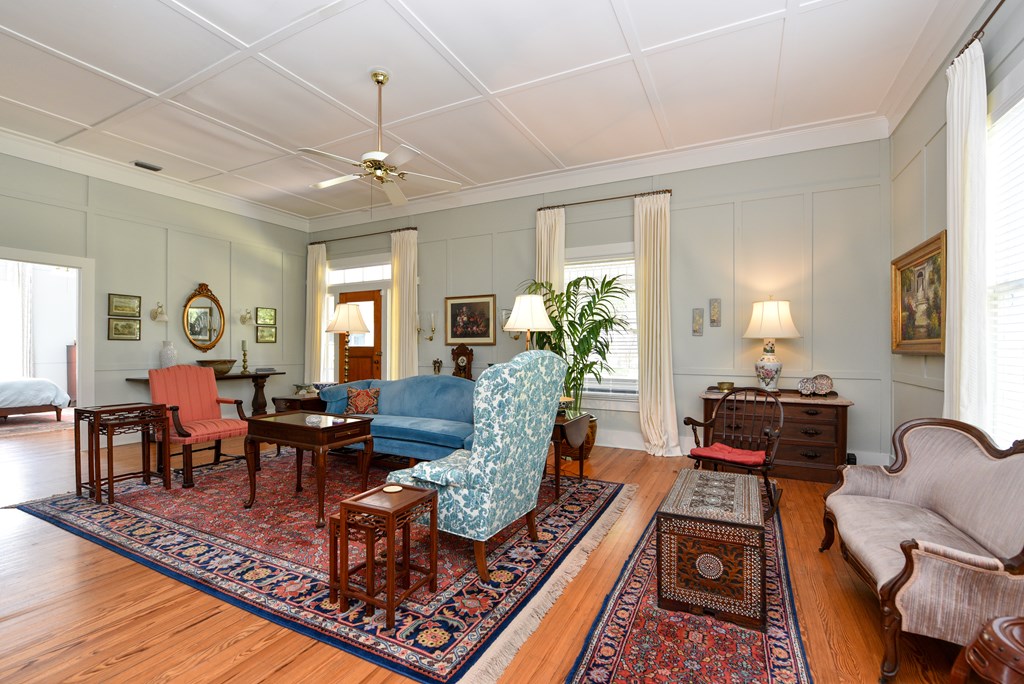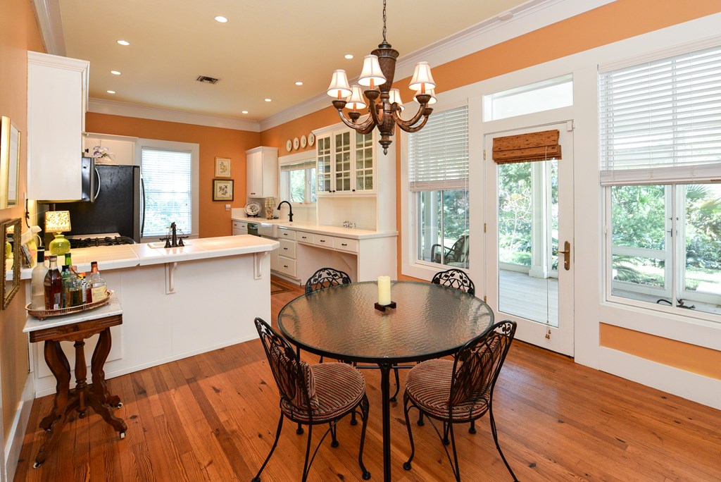 Gracious Restored Beauty in Apalachicola's South Historic District! Circa 1900 Craftsman inspired vintage home resting on two city corner lots, cloaked in mature canopy trees and lush landscaping. This 2 BR/2 BA home is just steps from Lafayette Park and Apalachicola Bay. Retreat in time to gentle Southern living, chatting with friends on evening walks, lingering on the front veranda, daydreaming on the screened porch, or lounging in the private gardens. This jewel is tastefully renovated while capturing a rich Craftsman architectural history. Lofty raised ceilings and hardwood floors throughout celebrate vernacular styling. Easy entertaining in the living room with gas fireplace and charming adjoining sitting room. The stately separate dining room is embellished with sophisticated Cypress paneling and a gas fireplace. A modern kitchen opening to a spacious screened porch features a dining nook, generous custom cabinetry, gas stove and black stainless appliances. BR 1 with ensuite bath rests off the living area. BR 2 is nestled quietly at the rear of the house convenient to a full bath. The landscaped surroundings with Rainbird irrigation system and shallow well provide a sense of serenity just minutes from Apalachicola local shops, restaurants, and music venues. This exquisite home is the perfect offering for Lovers of Apalach Culture and Casual Coastal Living!
