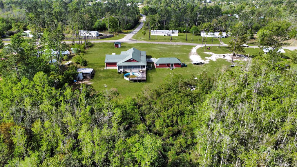 Escape to your own slice of paradise with this 5 bedroom 3 bath home situated on 3 peaceful acres along Stone Mill Creek. This home is designed for both functionality and comfort, featuring an expansive living area perfect for gathering or cozy nights in front of the fireplace. The kitchen is a true centerpiece offering ample counterspace, a pantry and a breakfast bar ideal for casual dining, with direct access to the dining area, perfect for entertaining. Enjoy a thoughtfully designed split bedroom floor plan ensuring privacy for the oversized master suite. The master retreat includes direct exterior access, a large walk in closet, spacious en suite bathroom with a separate soaking tub and standalone shower with versatile bonus room - originally envision as a dark room - ready to be finished to suit your needs as a home office, nursery, studio, possibilities are unlimited! Step outside and take in the natural beauty from wrap around porches or cool off in the above ground pool during warm summer days. A detached 44x18 garage offers plenty of space for vehicles, hobbies or a workshop. With a tranquil creekside setting, room to roam, this property blends rural charm with modern comfort, ready to welcome you home. All topped with a whole house generator to ensure you are never without power! Located 15 minutes to downtown Wewahitchka and only hour to the hustle and bustle in Panama City or the serene shores of Mexico Beach!